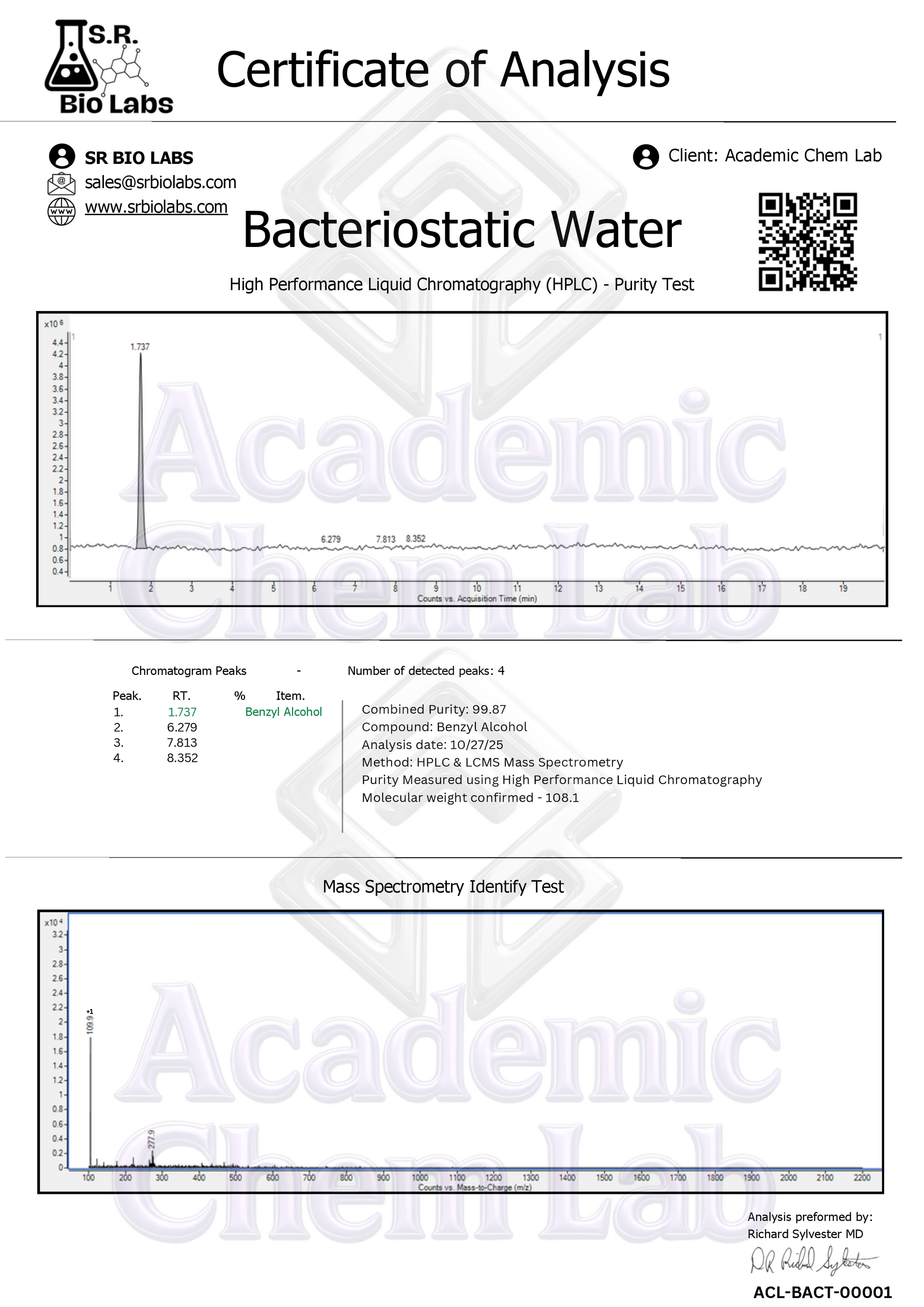 This 10 Pack contains (10 ) 3mL vials of Reconstitution Solution is intended for research use only. It contains sterile, non-pyrogenic water with 0.9% benzyl alcohol as a bacteriostatic agent to prevent microbial growth during the preparation and handling of laboratory solutions. It is suitable for diluting or reconstituting medications, reagents, or other substances in scientific research applications. This product is not for human or animal consumption and must be handled in accordance with appropriate safety guidelines. Keep the vial sealed and store it in a cool, dry place to maintain its integrity for research purposes.